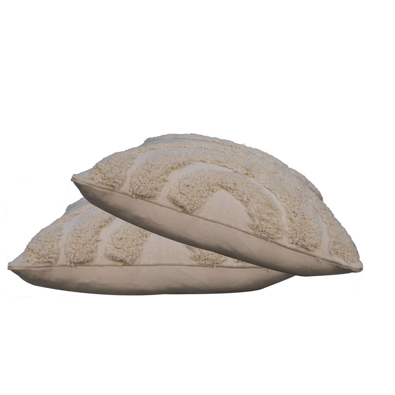 Just like our single cushions our cushion set features 2 white cushions, which have a lovely soft and fluffy surface upholstered in a lush cotton fabric. Perfect for cuddling up with on cozy nights on a 2 or 3-seater sofa. .This product is handcrafted individually and as every piece is unique please do expect variations in finish, texture, size and should not be considered as a defect.