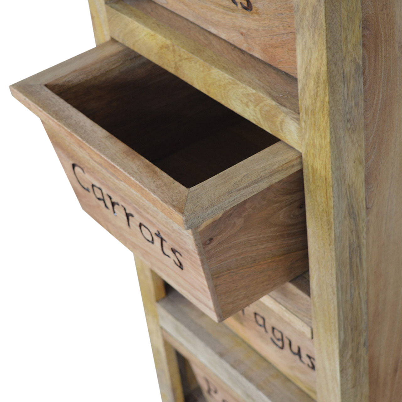 Grab our exclusively designed multi utility tray 'tallboy' for everyday kitchen needs. A classic yet petite piece of furniture for country style as well as modern open plan kitchen space. Artistically scripted utility storage trays add a special character to this unit.