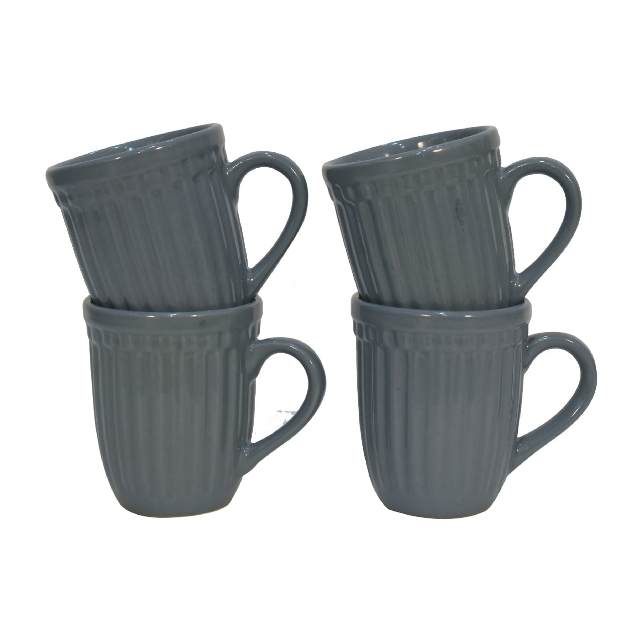 With a contemporary ribbed design, this mug set of 4 is offered in a charcoal grey colour and also available in a range of soft colours. Featuring a glossy finish, and a sturdy handle, it is the perfect choice for enjoying your favourite hot drink.