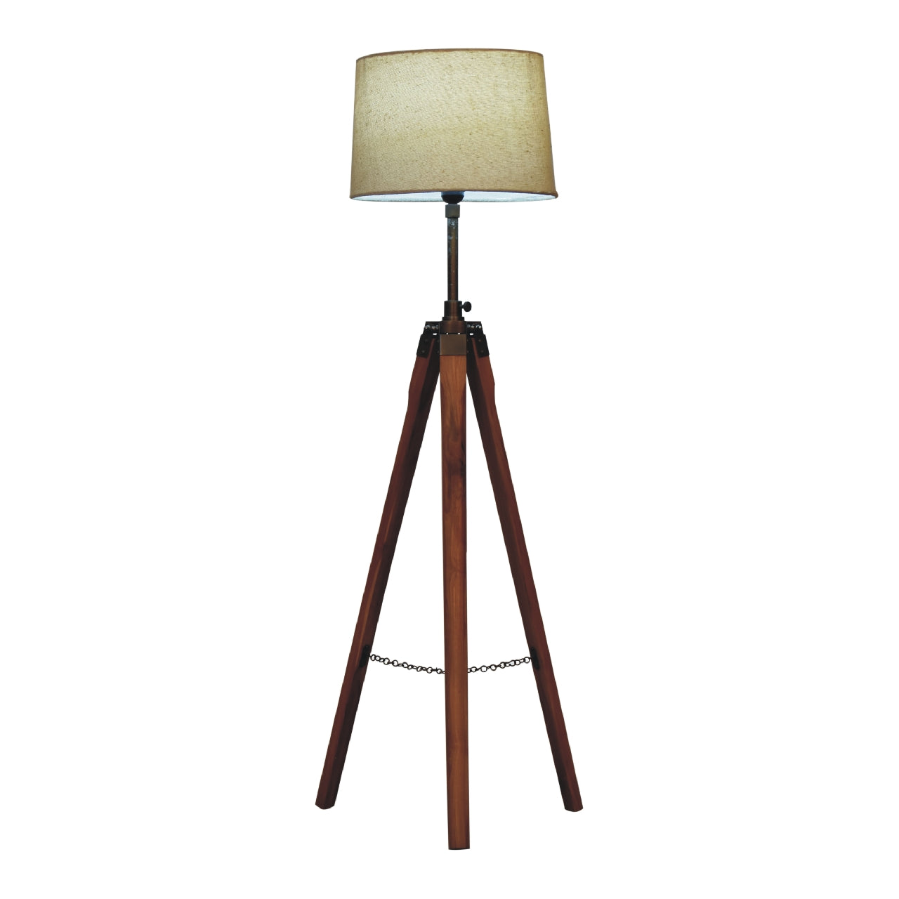This contemporary floor lamp features a fixed wooden tripod design base in teak wood as well as a neutral lampshade which will provide stability as well as a natural colourway and soft contrast. It is bound to inject both a modern and rustic touch to your home décor.