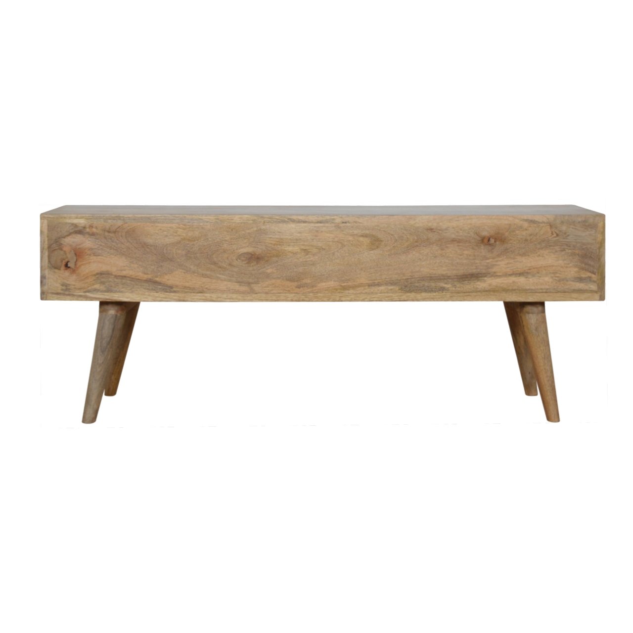 This solid timber media unit is expertly constructed from 100% solid mango wood in an oak style finish. It Has a clean and simple design to suit most homes. It features drawers that are hand spray painted in 3 different tones of grey, some other features include 4 Nordic style feet and a decent-sized table top to place a TV.