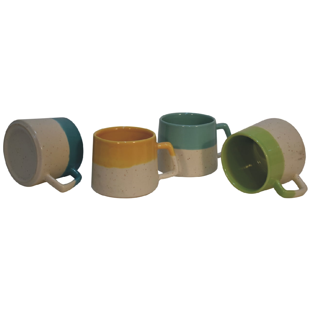 Stylish and contemporary, this mug set of 4 is ready to be filled with your favourite hot drink whether it's tea or coffee. Each mug has a speckled cream hand-painted design with different coloured dipped tops, perfect to add to your kitchen collection.