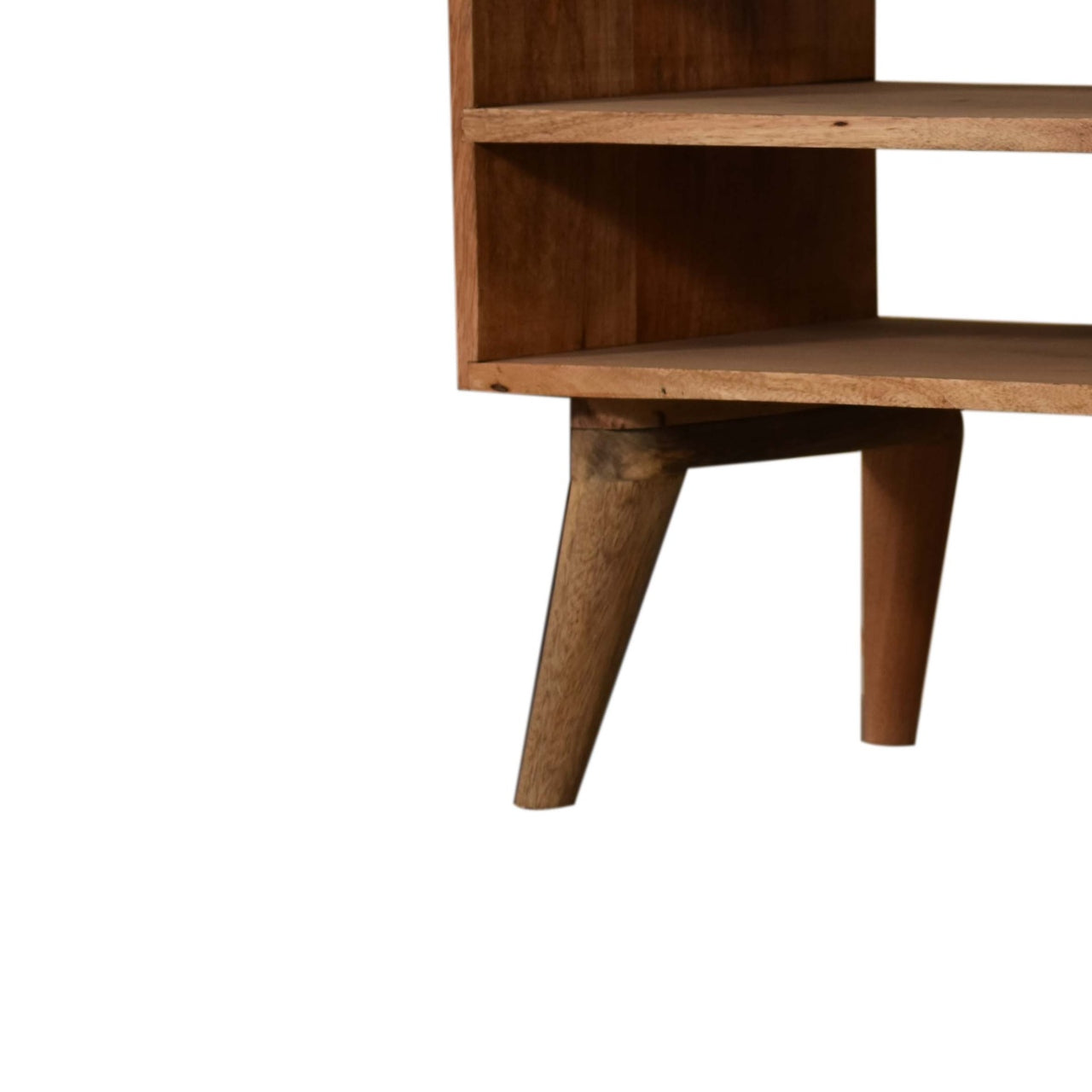 This two drawer media unit has been constructed from 100% solid mango wood and finished in a fine oak-style finish body. The main feature of this piece is the screen printed drawer fronts of which each have a beautiful black and white geometric design. Useful storage is provided with the open slots and drawers that can be used to store any DVD's, films or books.