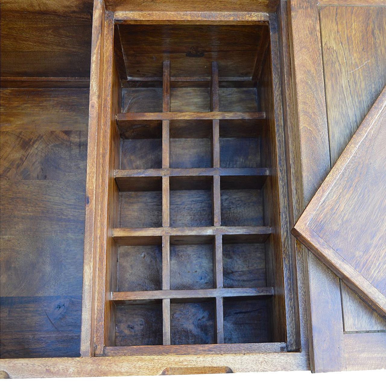 Add this folding tucker table to your dining room, conservatory or hallway. It features an open compartment in the middle which is handy for placing any bottles of wine and has 2 lid up storage seats, which are perfect for hiding away any blankets or cushions. It has been constructed from 100% solid mango wood in a chestnut finish and 4 straight.