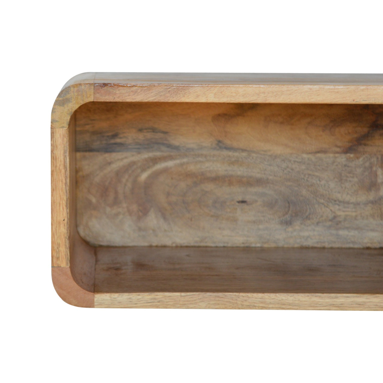 This minimalistic wall mounted unit has been constructed from 100% solid mango wood in a oak-ish finish and features 1 open slot perfect for storing any bits and pieces you wish to keep close by before bedtime.