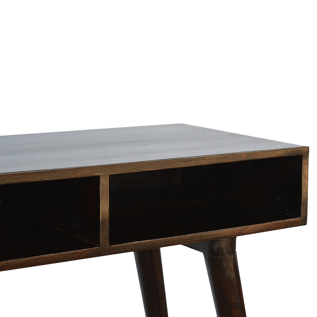 Combining a piece that can be used in both a modern and vintage setting, this solid wood writing desk provides ample space for you to work on. It is constructed from 100% solid mango and has a rich walnut finish. Other features include 2 open shelves to place any notebooks, papers or stationary and a decent sized table top to work on or place a computer/laptop. The perfect addition to any home, with its clean design to suit most decors.