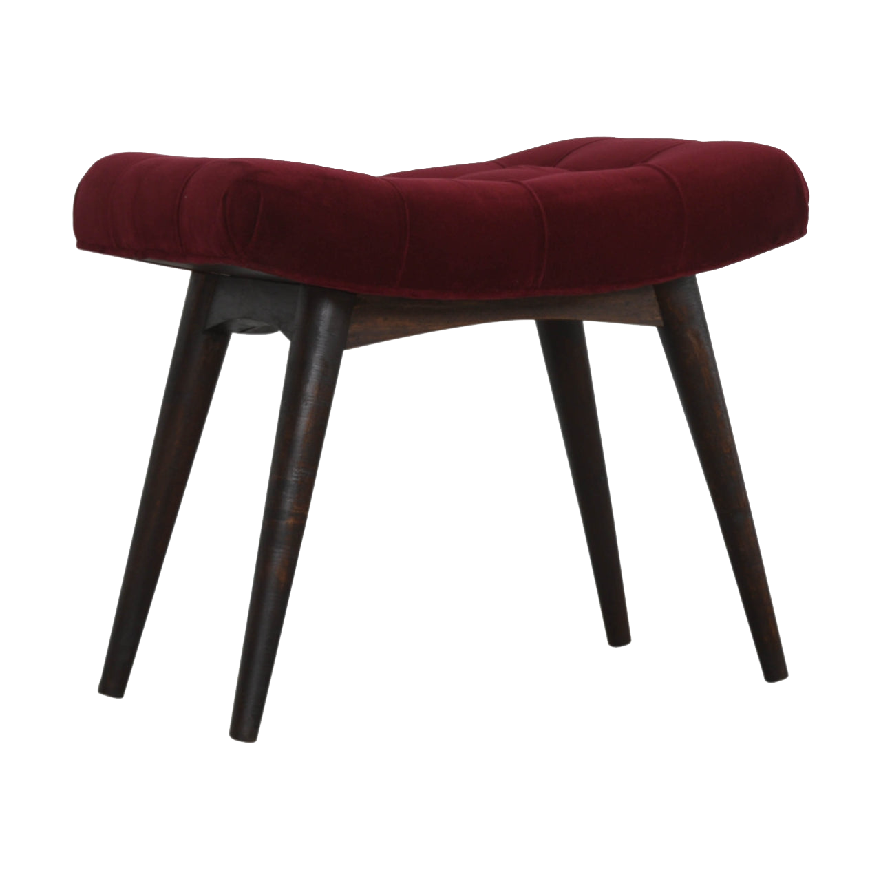Wine Red Cotton Velvet Curved Bench