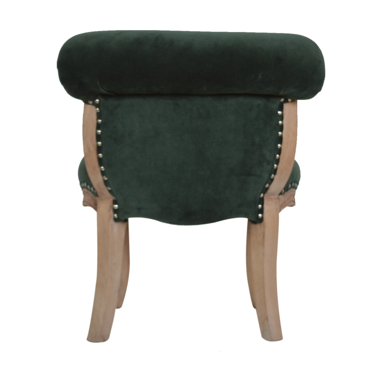 Add class and style to your home with this occasional chair. The upholstered emerald green cotton velvet fabric goes beautifully with the studded design giving the piece an overall unique and chic look. With solid wooden legs constructed from 100% solid mango wood in a sunbleach finish, the chair provides strength and durability and can be incorporated into different home settings and interiors.