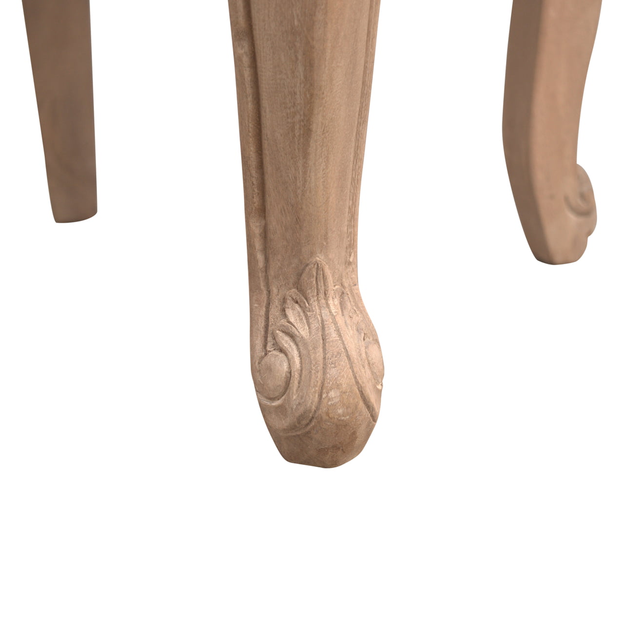 This stunning French-styled accent chair is constructed from 100% solid mango wood and upholstered in mud linen. Other features include 4 French-styled cabriolet legs which have a sun-bleached finish. This chair will sit beautifully, adding charm and elegance to any living space in your home.