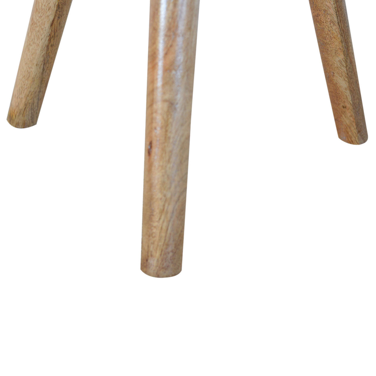 A traditional solid Nordic wood style round stool, made from 100% mango wood with an oak-style finish. The no fuss finish reveals the beautiful grain of the mango wood. This tripod table has 3 Scandinavian style legs and is a versatile piece which can be used as an end table, lamp table or a stool which can be easily stored away in the home. Every piece of furniture is individually handcrafted and includes swing care tickets explaining the cautions and aftercare instructions.