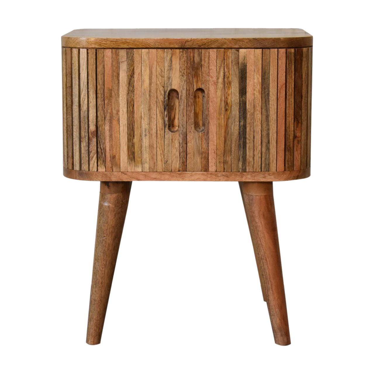 Our Mokka Bedside will create an opulent ambience in your bedroom. Constructed from 100% solid mango wood it features a distinctive elegant mixed wood pattern, as well as featuring 2 cut-out handles and 4 nordic style legs. A simple but effective piece for the home.