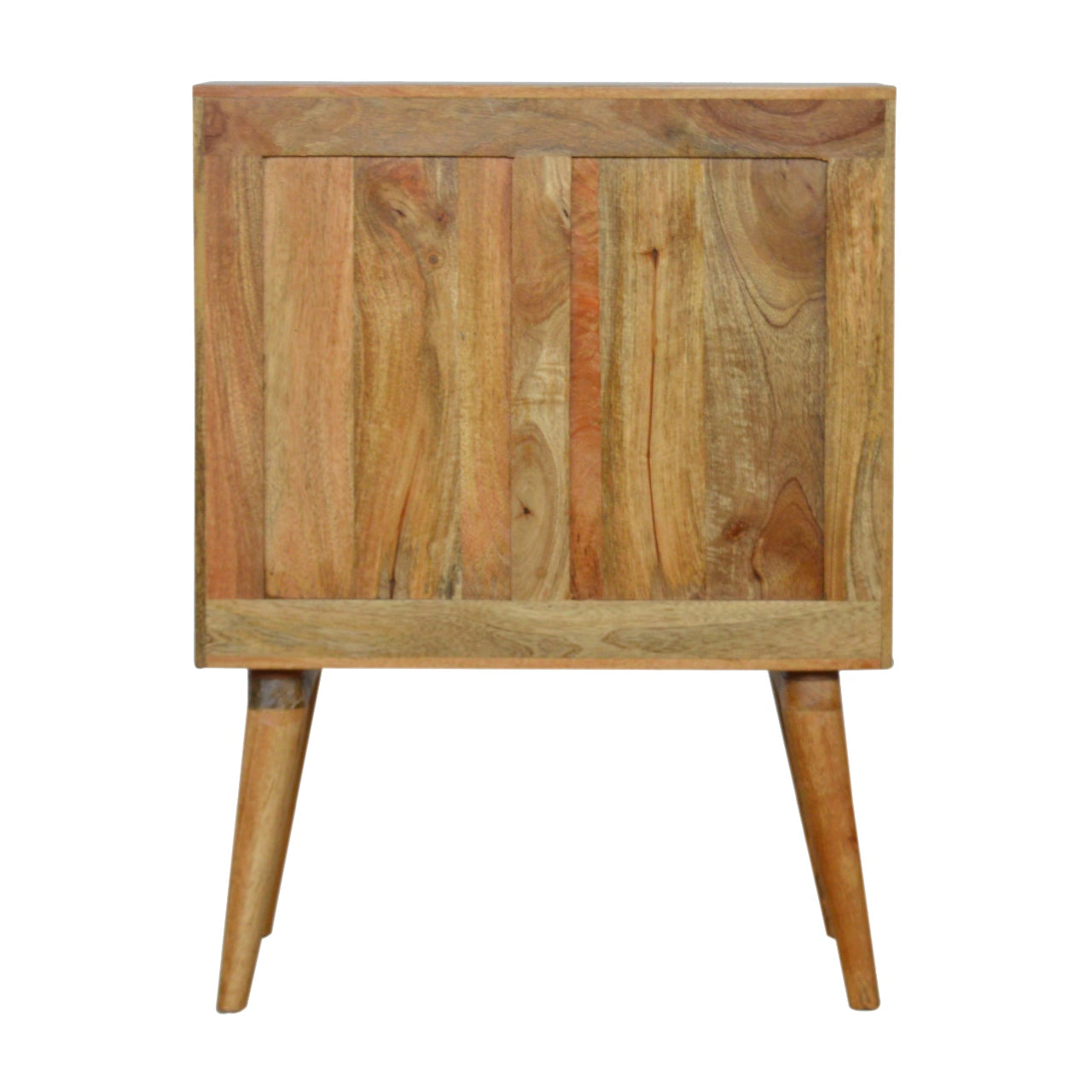 This beautifully designed bedside is constructed from a 100% solid mango wood and has fine, smooth oak-style finish. Endlessly versatile, this bedside table offers useful storage space with drawers and slots. Other features include Scandinavian styled feet and shiny brass knobs for the drawers.