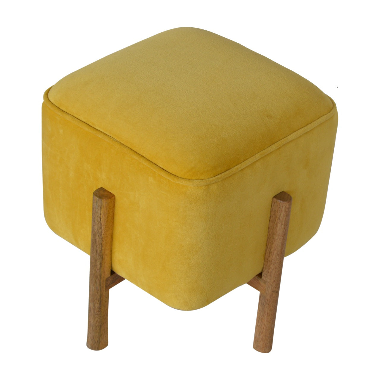 Combining the best of simplicity with the timeless look of luxury, this stylish footstool is upholstered in mustard yellow velvet and features supportive legs constructed from 100% solid mango wood in an oak-ish finish ensuring durability, giving you a place to rest for years to come. It can be used in any part of the home as an accent piece, footrest, or as extra seating around a small table.