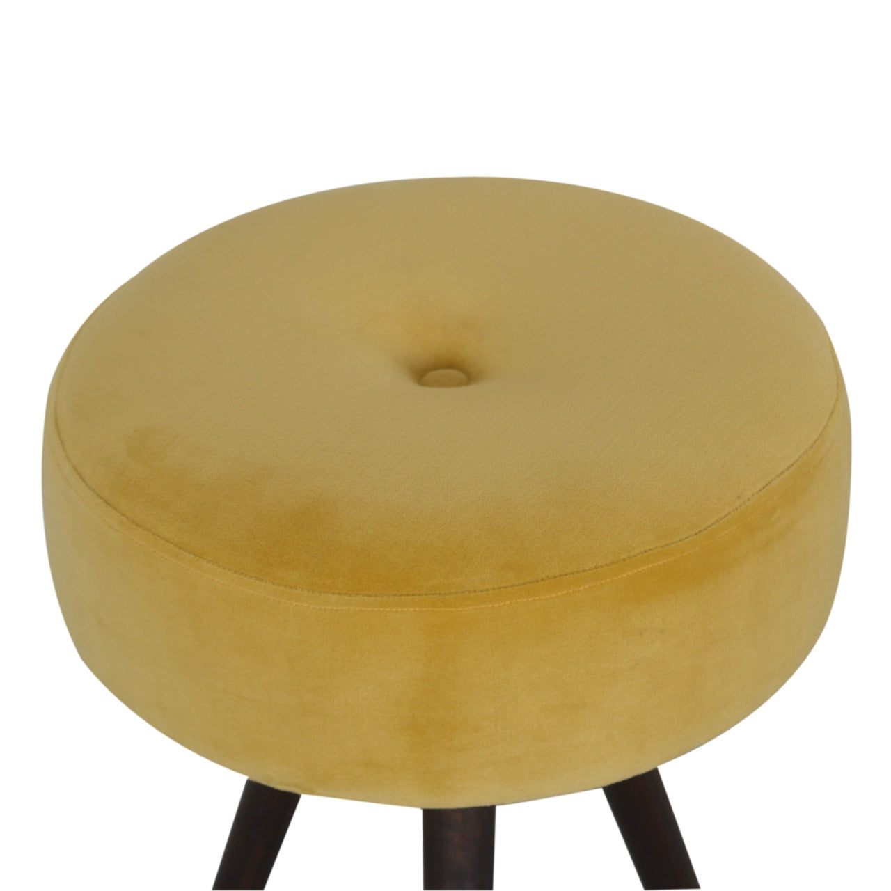This round stool footstool is upholstered in mustard cotton velvet and has Nordic style legs constructed from 100% solid mango wood in a walnut finish. The tripod design is versatile, convenient and can be easily stored away in the home. Every piece of furniture is individually handcrafted and includes swing care tickets explaining the aftercare instructions.