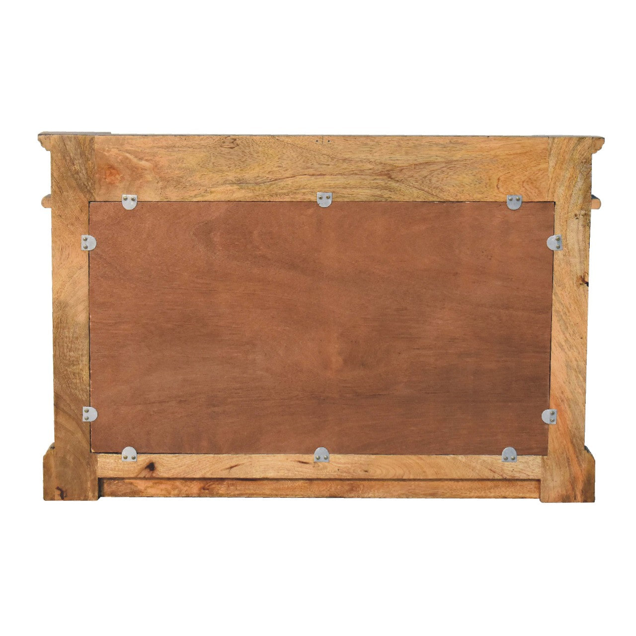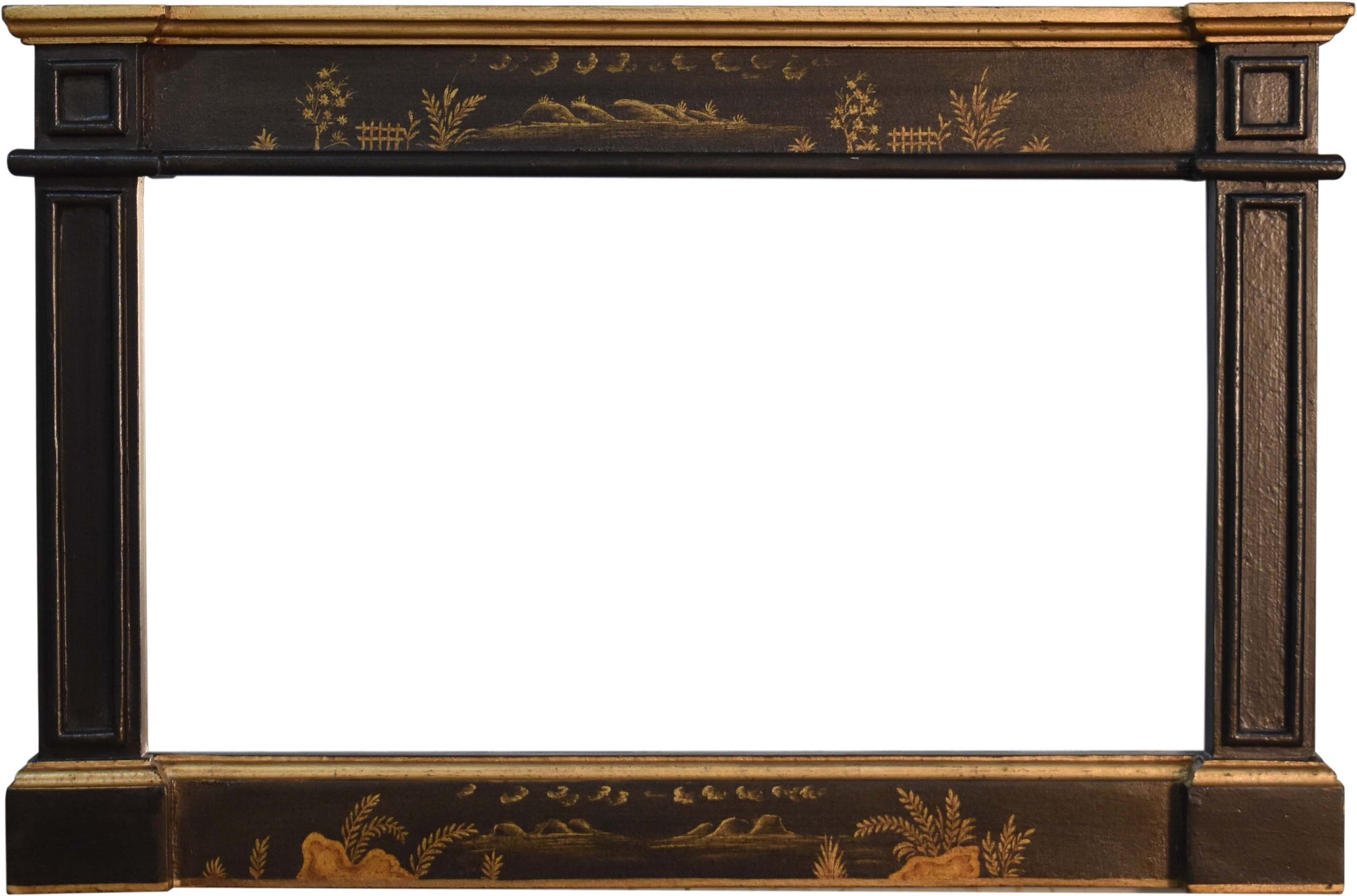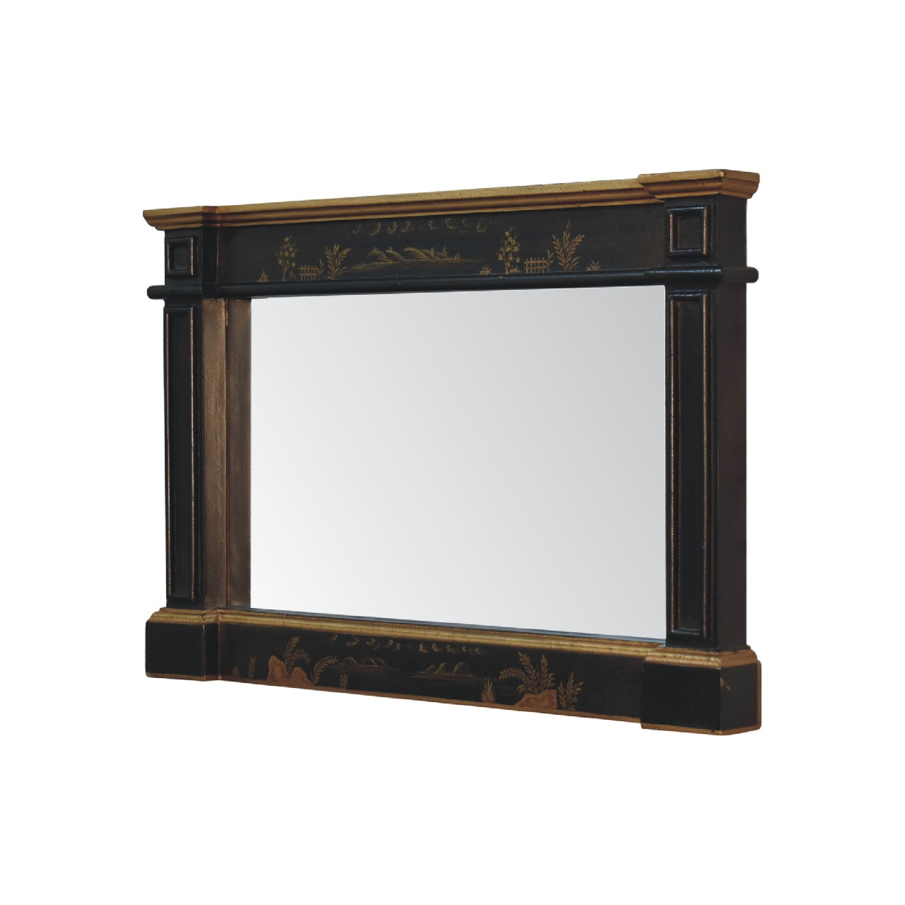 Embrace the essence of Peking art with this Oriental mirror. Crafted from solid mango wood it features a hand-painted black base adorned with hand sketched oriental characters, each telling a unique story. The design is highlighted by a plinth bottom, adding an elegant flow.