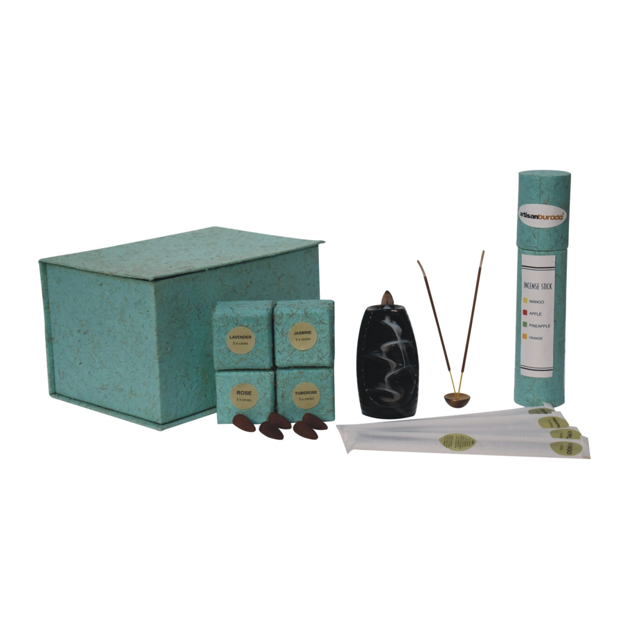The backflow fountain burner set is exquisitely crafted and features a unique waterfall design, ideal as a gift for friends and family. The set includes a backflow burner, incense holder , fragrant backflow cones and incense sticks. The incense burner can clean a calm and peaceful environment with the smoke being created in the air to maintain a pleasant body and mind, and improve the efficiency of work and quality of life.