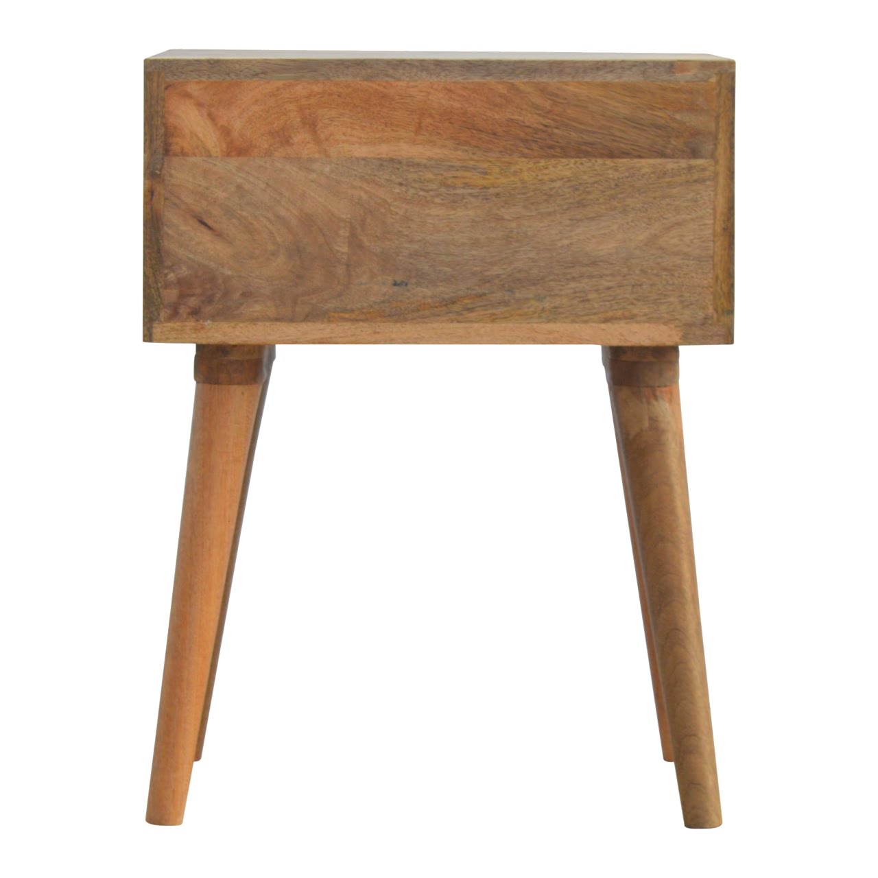 This bedside table is a versatile piece that will prove useful all over your home and provide storage for any bits and pieces before bed. It has been made from 100% solid mango wood with has a fine oak-style finish. It also comes with 2 pink floral screen printed drawers that have glass knobs and 4 Nordic-style legs.
