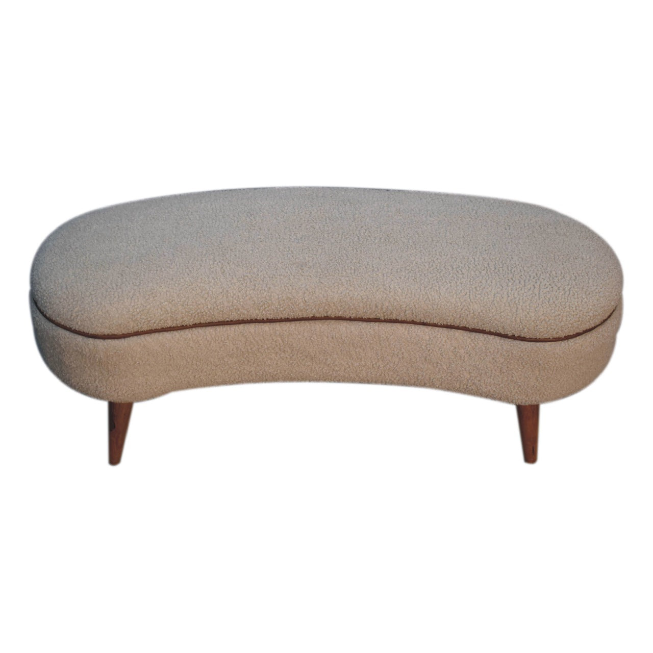 The Serenity bench is the perfect addition to any bedroom or living room. It is upholstered in a luxurious cream boucle fabric and has buffalo leather piping around the rim for extra dimension and character, as well as nordic style legs which are constructed from 100% solid mango wood in a oak-style finish.