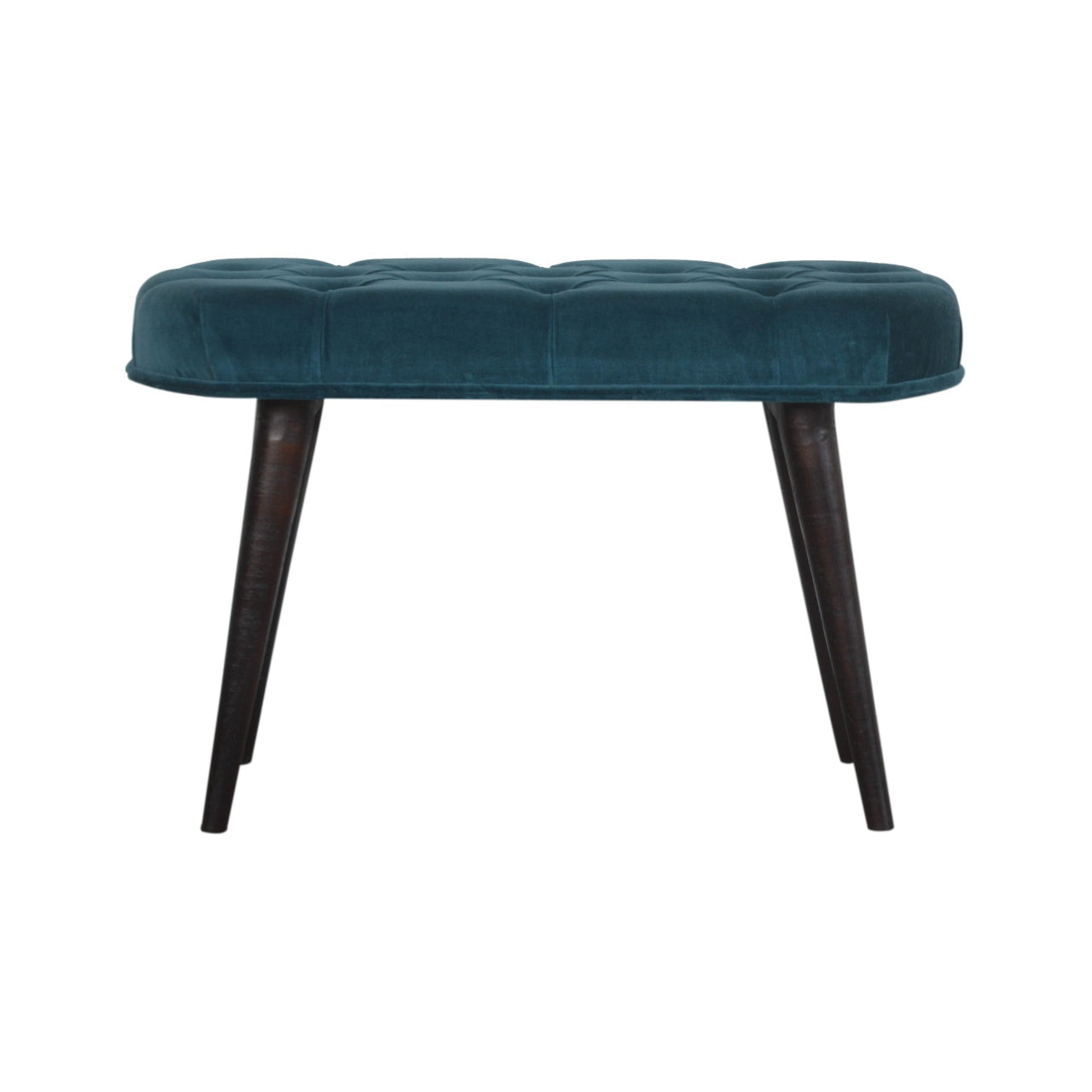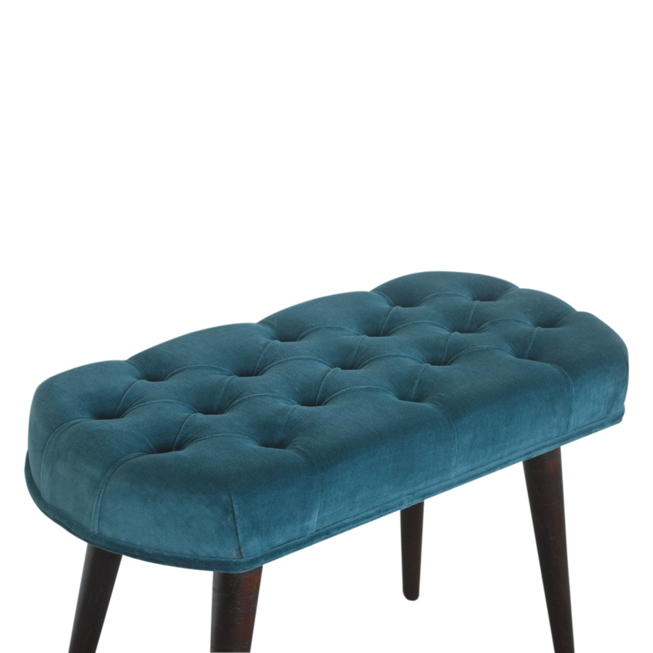 This Nordic style bench has been upholstered in a beautiful teal cotton velvet fabric and features a deep-button design on the top. The bench stands on 4 legs constructed from 100% solid mango wood in a walnut finish and it is the perfect piece to add to your bedroom or hallway as a finishing touch in the home.