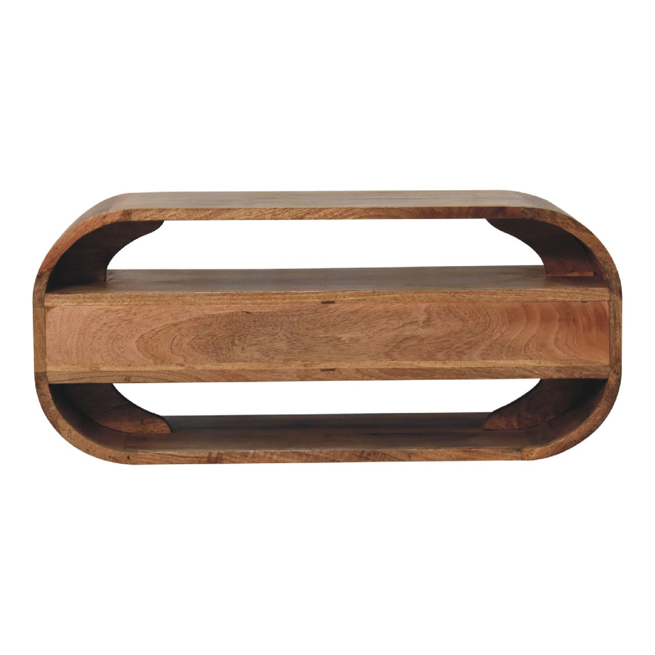 This solid wood TV Media Unit has been constructed from 100% solid mango wood in a oak-ish finish and offers a nice rounded look on the edges. It features 2 drawers which come with a shiny knob and 2 open slots for extra storage. A great simple and addition to the living room.