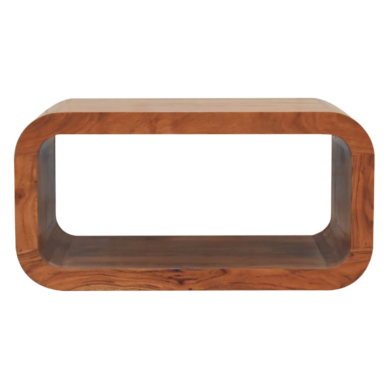 Add this Darcy Media Unit to your interior, it has smooth round edges, making it child and pet-friendly in the home. It is constructed from 100% solid acacia wood in a caramel finish and features space below to keep any bits and pieces close by in the living room.