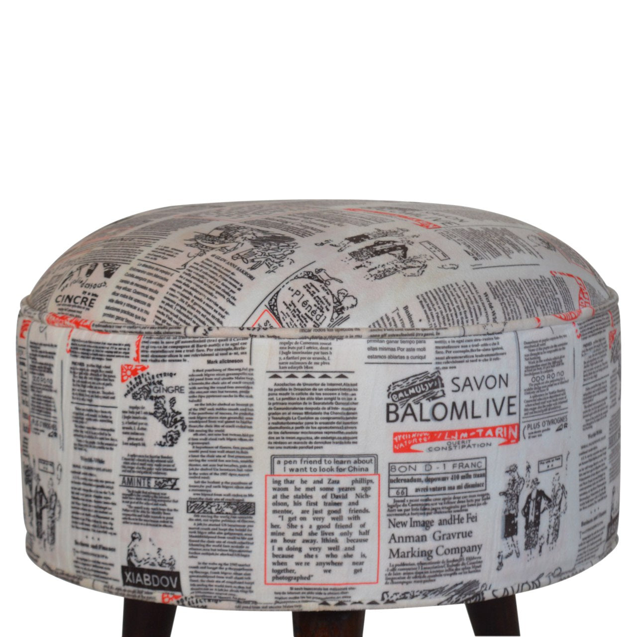 IN1018 - Round Footstool with News Print Velvet